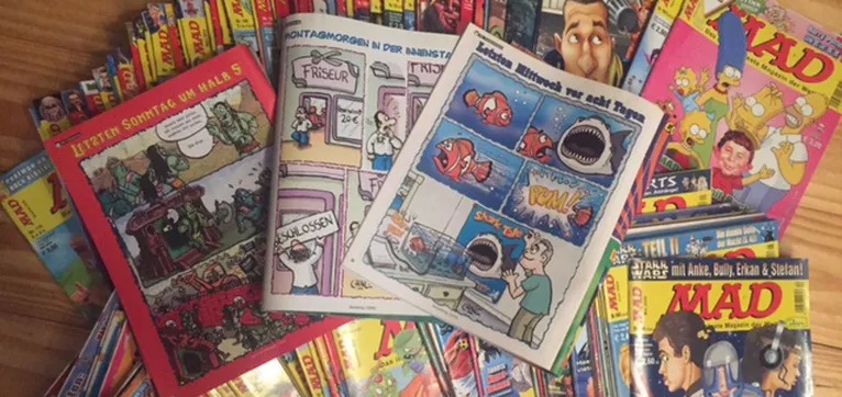 • Since 2001 he started to publish in MAD magazine in Germany (the most famous humor publication of the world) every month his full-page cartoons without words, where he continue collaborating.